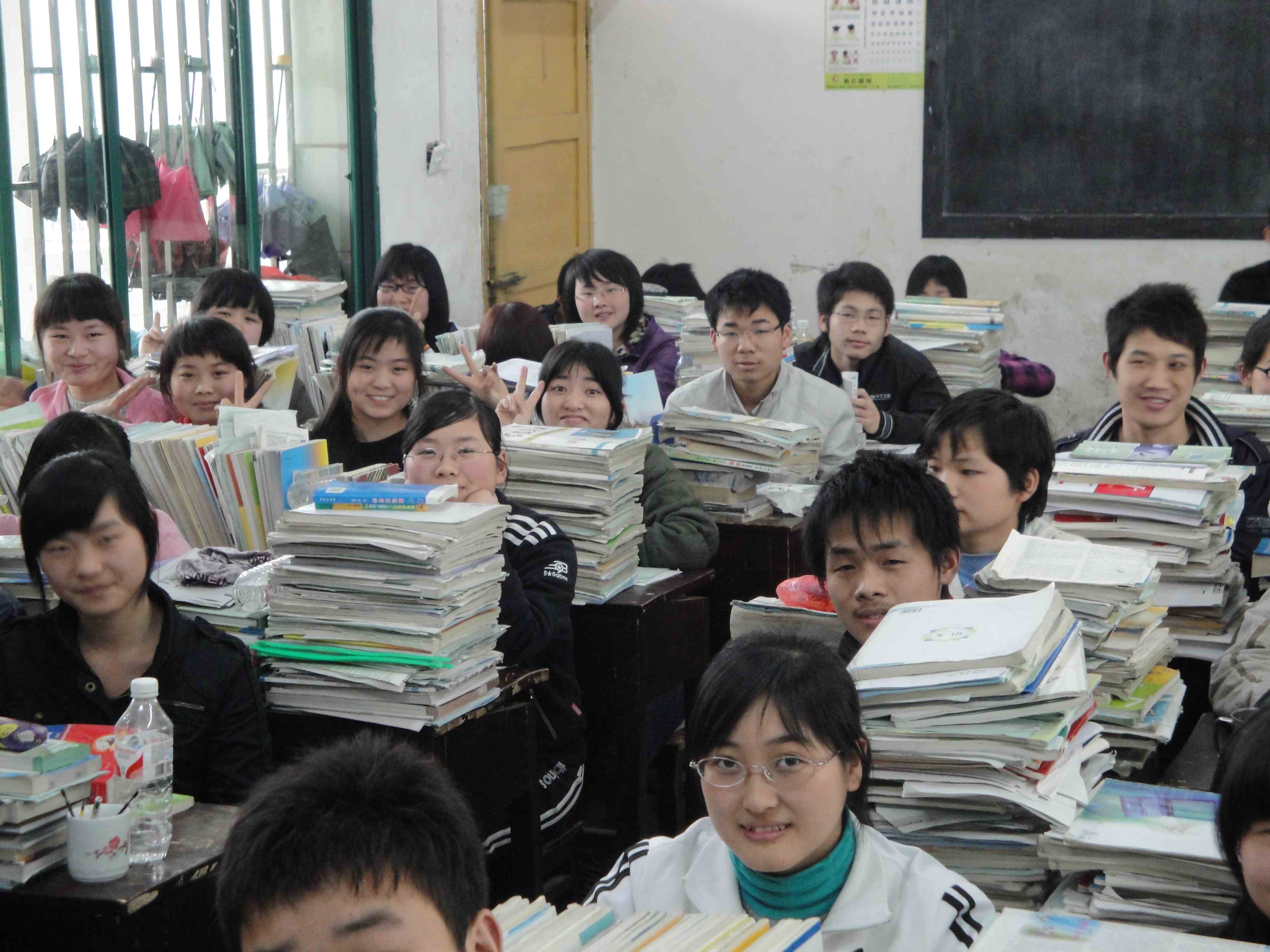 Middle school students in Hunan briefly distracted from the dreaded gao kao by the presence of a foreigner.